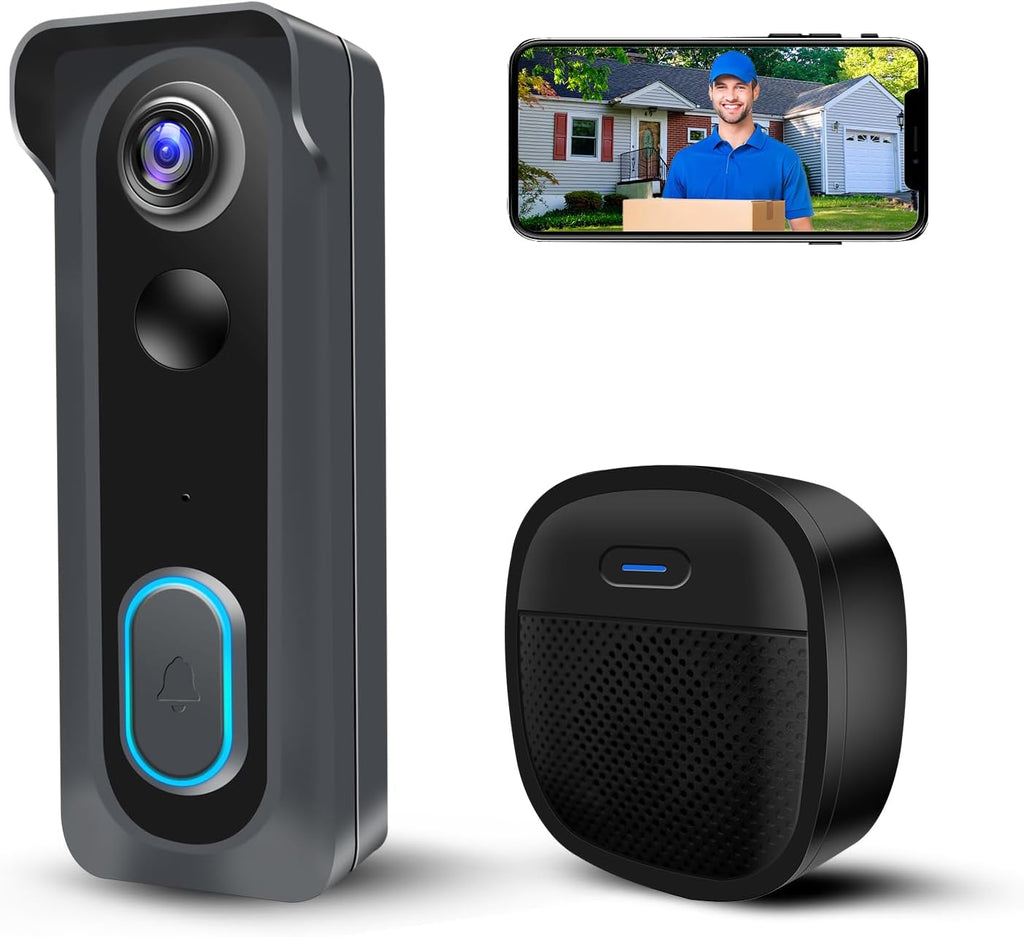 Video Doorbell Camera Wireless with Chime, 2K HD WiFi Smart Doorbell, Voice Changer, PIR Motion Detection, 2-Way Audio, Night Vision, 2.4G, IP66, Battery Powered